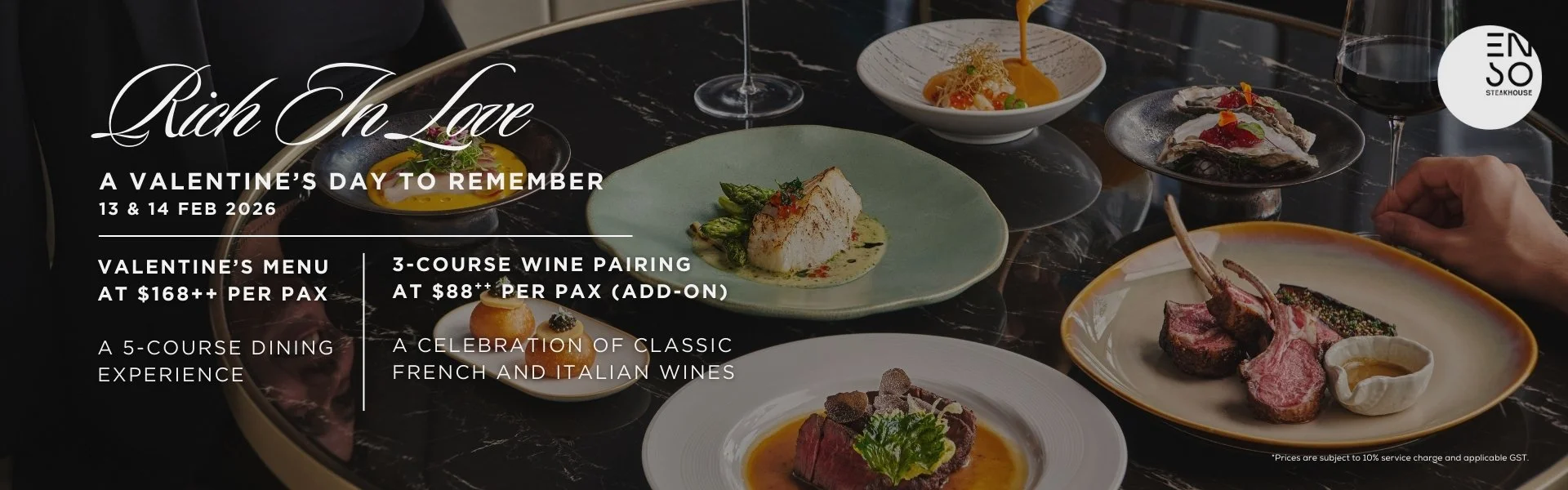 Celebrate Valentine’s Day at ENSŌ Steakhouse with an intimate dining experience designed to linger. From elegant plates to thoughtful pacing, our Valentine’s menu invites couples to slow down, savour the moment, and enjoy an evening rich in connection and flavour.